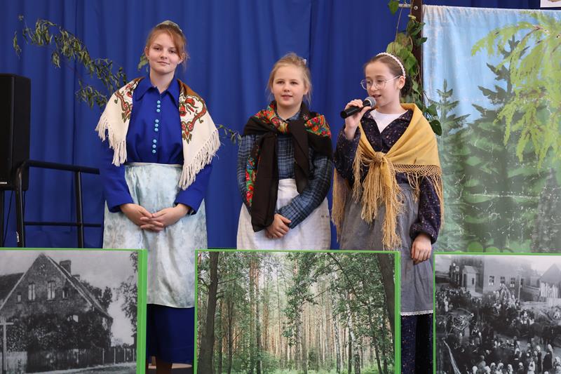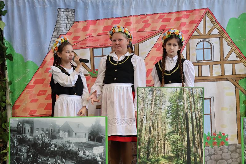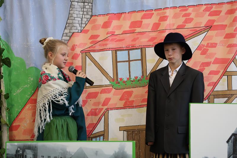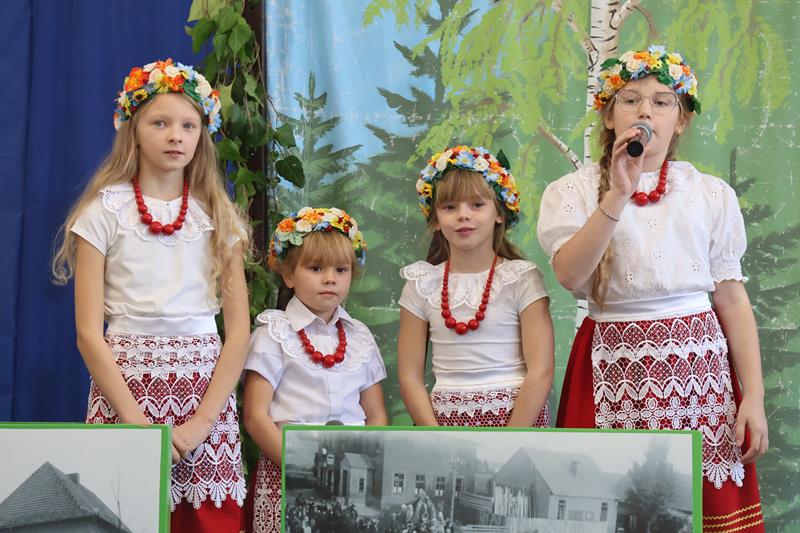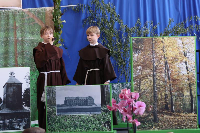 Po powitaniu gości Pani Dyrektor oddała głos uczniom klasy IV i V, którzy zaprezentowali krótki spektakl pt. „Boreckie legendy i opowiadania” według scenariusza i w reżyserii Anny Meryk i Joanny Meryk. Finałową piosenkę o Borkach Wielkich zaśpiewały uczennice klasy I i III. Występ zachwycił zebranych. Następnie głos zabrali goście. Wśród wielu życzliwości, gratulacji i słów wsparcia nie zabrakło również wzruszających wspomnień z początków tworzenia Izby Pamięci Śląskiej. Podsumowaniem pierwszej części spotkania było chóralne wykonanie przez wszystkich 91 uczniów naszej szkoły piosenki „Olesno, kochane me miasto”. W niejednym oku zakręciła się łza wzruszenia.