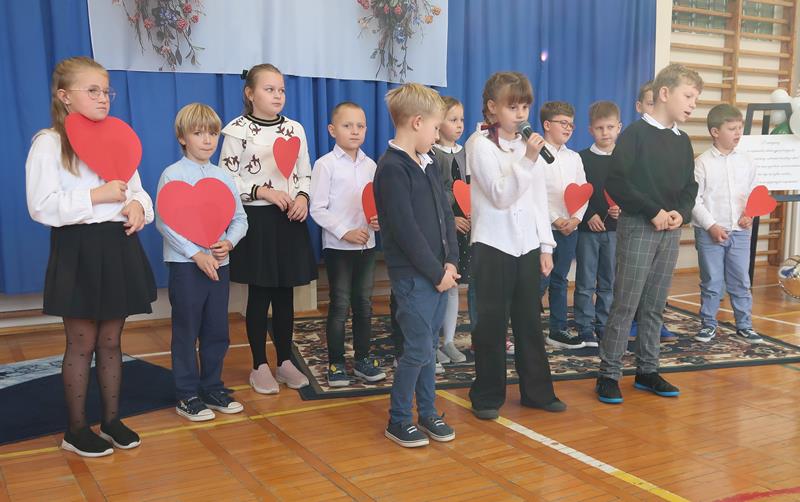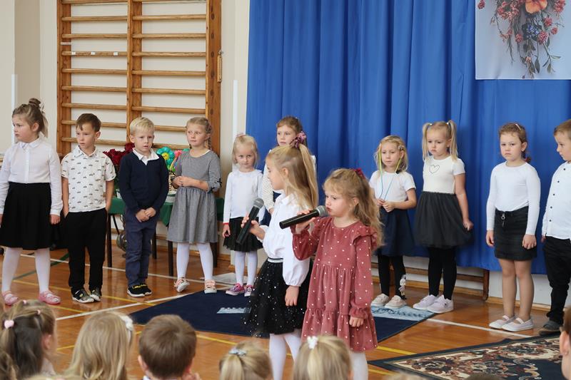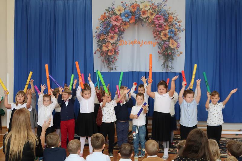 Najmłodsi artyści wierszem i piosenką wyrazili swoją wdzięczność wszystkim pracownikom szkoły i przedszkola za trud, cierpliwość i codzienną troskę o dzieci. Ich występ był pełen radości i szczerości, a uśmiechy na twarzach widzów mówiły same za siebie.