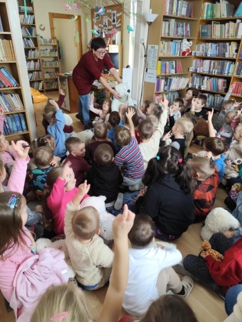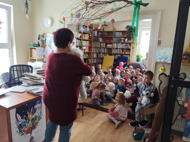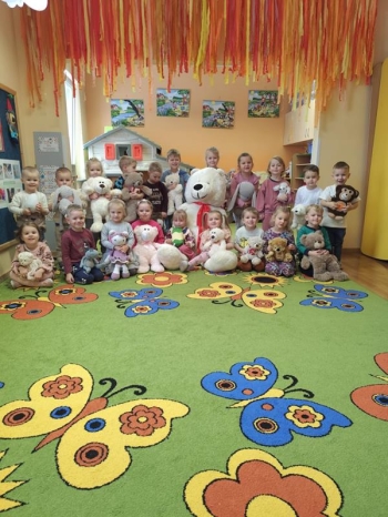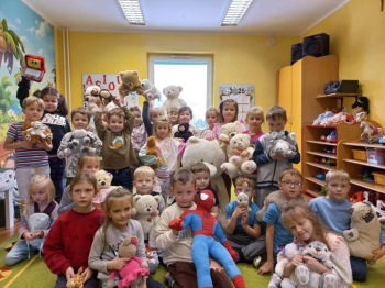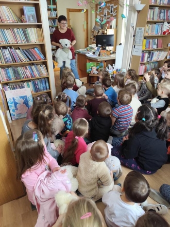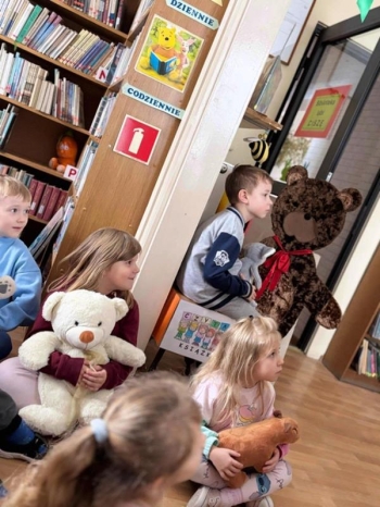 W czwartek 27 listopada 2025 roku wszystkie przedszkolaki udały się do biblioteki w ramach obchodzonego kilka dni wcześniej "Światowego Dnia Pluszowego Misia". Dzieci z żywym zaciekawieniem słuchały historii powstania pluszowej zabawki.