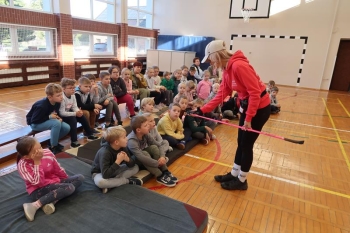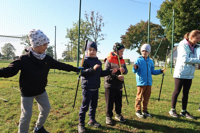 Po części teoretycznej uczniowie wzięli udział w zabawach i grach ruchowych z wykorzystaniem kijków. Było dużo śmiechu, trochę rywalizacji, a przede wszystkim mnóstwo świetnej zabawy. Następnie odbyły się praktyczne ćwiczenia oraz wspólny spacer, podczas którego dzieci mogły zastosować w praktyce nowo zdobytą wiedzę i umiejętności.