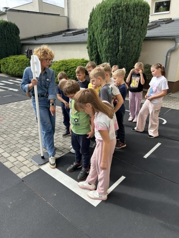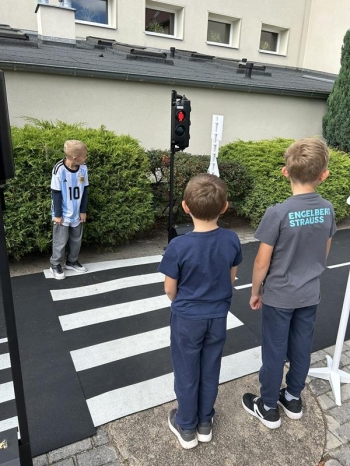 Podczas zajęć dzieci utrwalały zasady przechodzenia przez jezdnię – w miejscach z sygnalizacją świetlną, na pasach oraz tam, gdzie przejść nie ma. Przypomniano również o obowiązku noszenia odblasków oraz o znaczeniu kasków ochronnych podczas jazdy rowerem lub hulajnogą.
