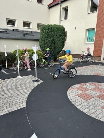Największą atrakcją tygodnia było miasteczko ruchu drogowego, które powstało na szkolnym placu. Uczniowie mogli tam w praktyce sprawdzić swoje umiejętności, wcielając się w rolę pieszych, rowerzystów i kierowców.