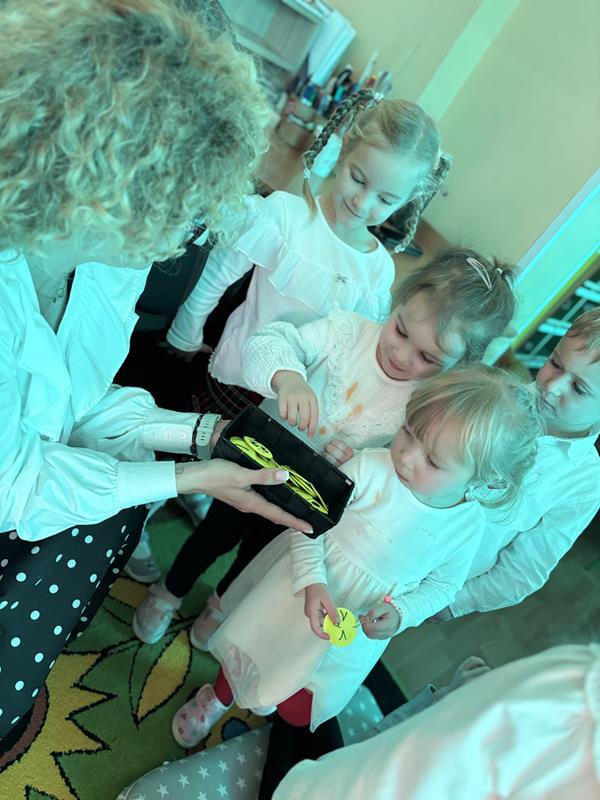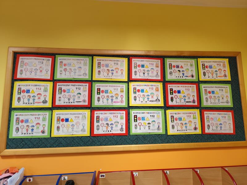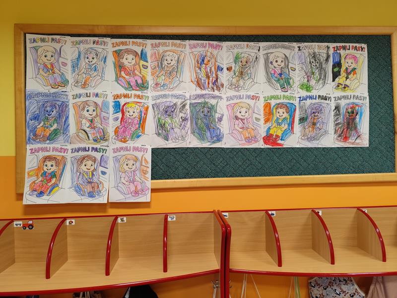 Na początku dzieci obejrzały film edukacyjny oraz wzięły udział w pogadance i warsztatach na temat właściwego przechodzenia przez jezdnię, korzystania z chodnika, noszenia odblasków i kasków, a także zapinania pasów bezpieczeństwa w fotelikach samochodowych. Następnie wspólnie zaśpiewaliśmy piosenkę „Bezpieczna droga ze znakami", która w radosny sposób utrwaliła zdobyte wiadomości. Przedszkolaki mogły również sprawdzić swoją wiedzę w mini quizie, a za aktywny udział otrzymały w nagrodę odblaski, które z pewnością przydadzą się podczas jesiennych spacerów. Na zakończenie dzieci kolorowały obrazki przedstawiające bezpieczne zachowania na drodze. Z przygotowanych prac powstała gazetka tematyczna, która została zaprezentowana w przedszkolu i wzbudziła duże zainteresowanie wśród dzieci i rodziców. Mamy nadzieję, że zdobyta wiedza pomoże najmłodszym być widocznymi i bezpiecznymi uczestnikami ruchu drogowego.