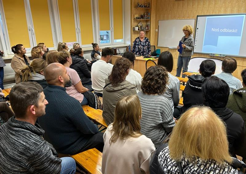 Rodzice z zainteresowaniem wysłuchali wskazówek dotyczących bezpiecznego poruszania się po drogach oraz zasad widoczności po zmroku. Wspólnie podkreśliliśmy, że nawet mały odblask może uratować życie.
