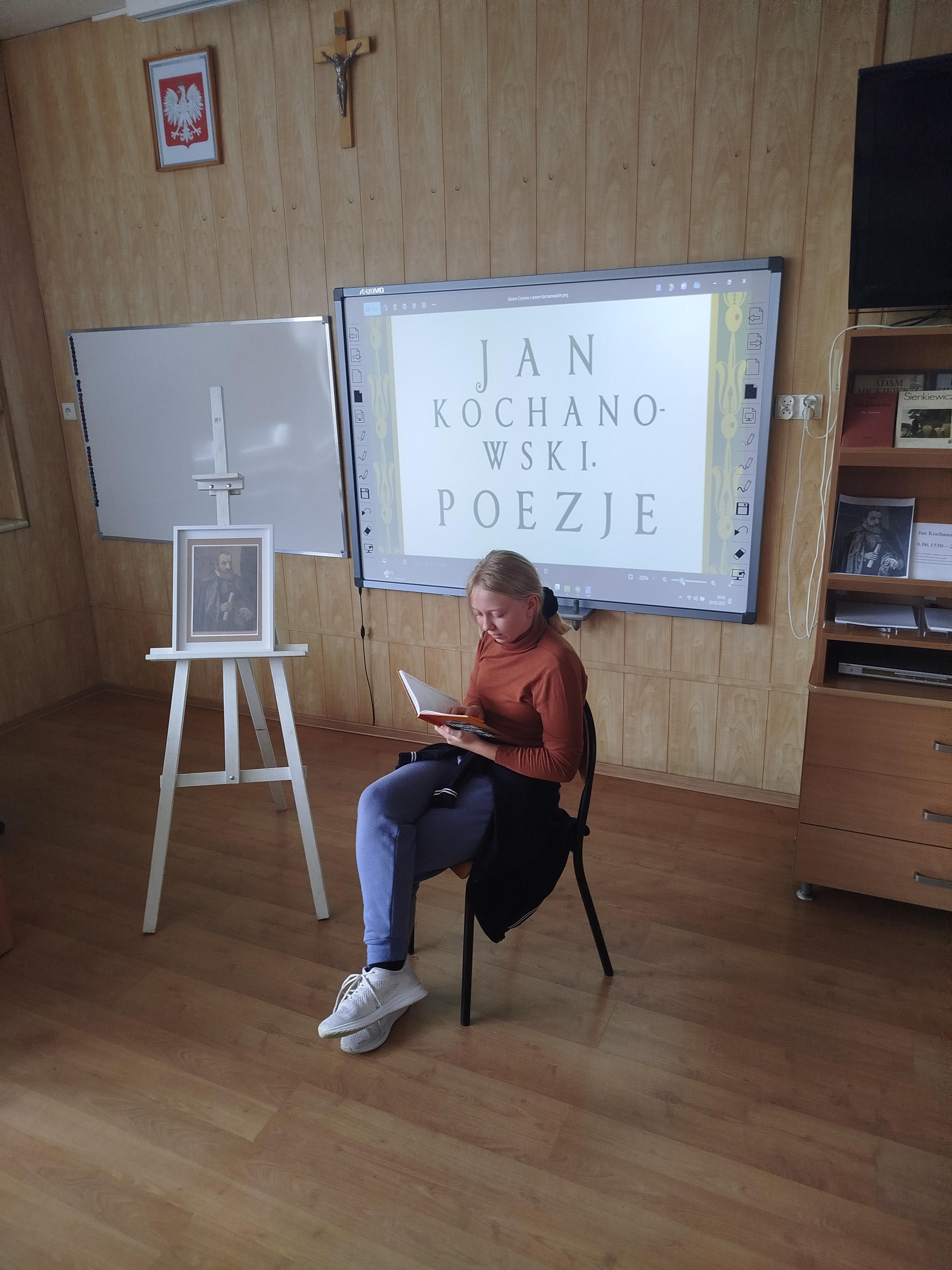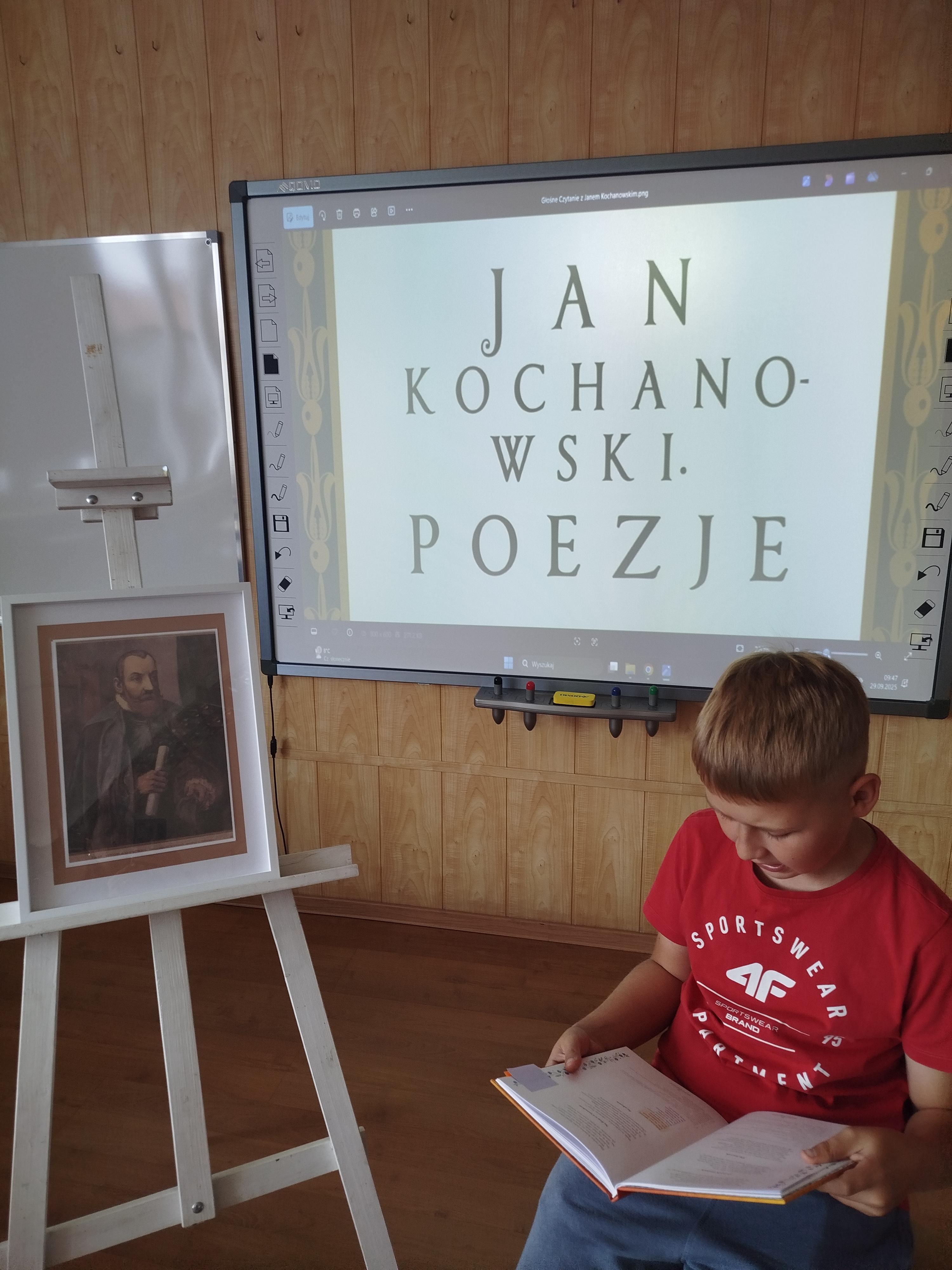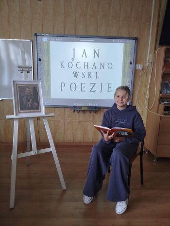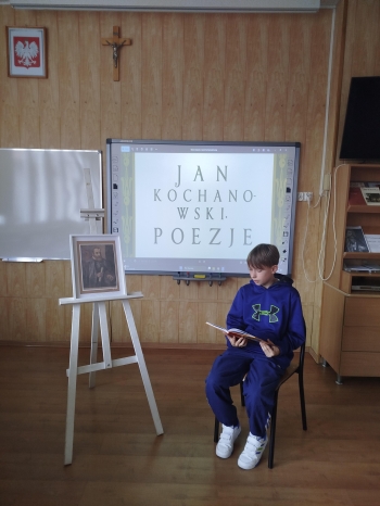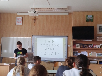 Starsze klasy przygotowały czytanie wybranych utworów Jana Kochanowskiego – pieśni, trenów i fraszek. Wybór ten nie był przypadkowy – właśnie te dzieła zostały zaprezentowane 6 września podczas Narodowego Czytania, któremu patronowała Para Prezydencka. Nasza szkoła również postanowiła przyłączyć się do tej inicjatywy i popularyzować twórczość najwybitniejszego poety polskiego renesansu. Na korytarzu szkolnym przy sali numer 7 uczniowie klas młodszych czytali utwory z literatury dziecięcej i młodzieżowej.