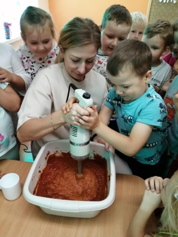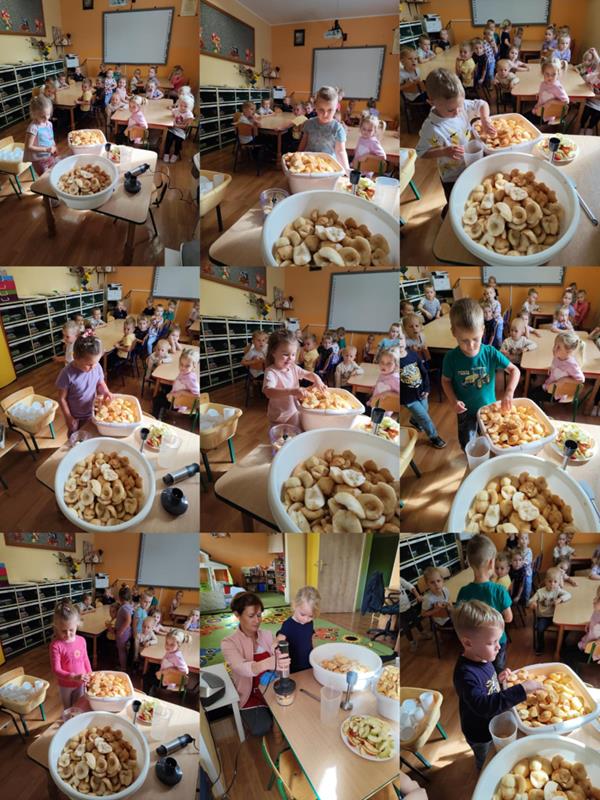W naszym przedszkolu nie tylko uczymy, ale też smakujemy świata wszystkimi zmysłami! Tym razem dzieci zamieniły się w małych kucharzy i pomagały w przygotowaniu pysznego, domowego musu jabłkowo-gruszkowego.