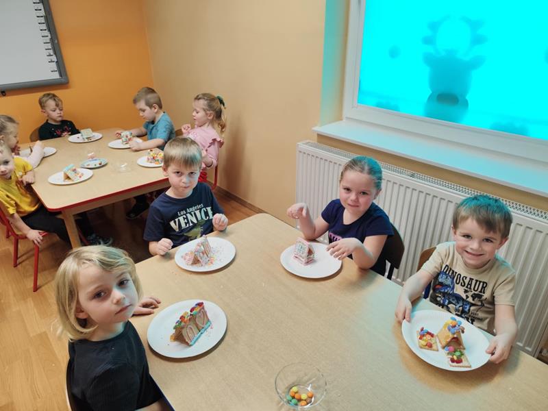 Dnia 12 grudnia 2025 roku dzieci z mÅ‚odszej grupy miaÅ‚y okazjÄ™ twórczo podziaÅ‚ać. "Maluszki" od poczÄ…tku adwentu codziennie wykonujÄ… po jednym zadaniu, które ma nas przybliżyć do ÅšwiÄ…t Bożego Narodzenia. Tego dnia naszym zadaniem adwentowym byÅ‚o wykonanie Å›wiÄ…tecznych chatek z ciastek.