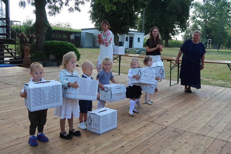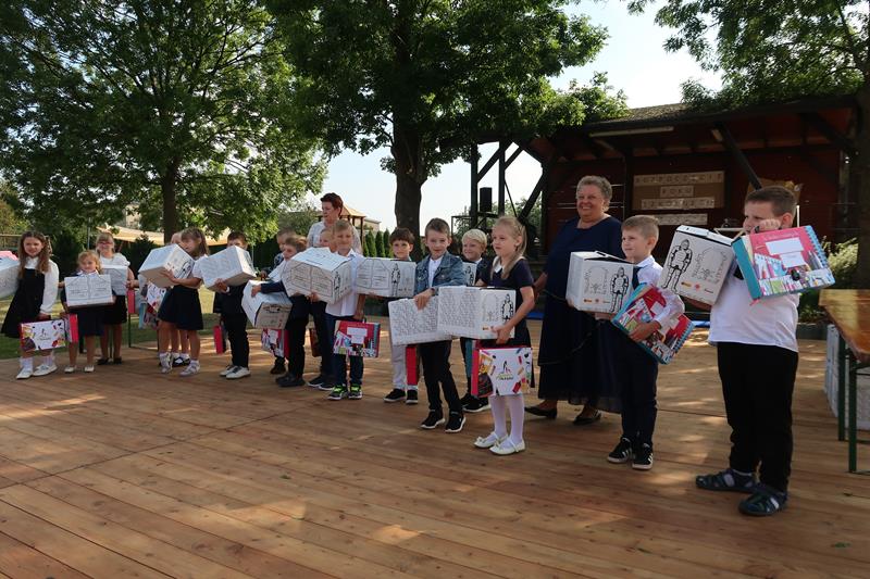 Szczególnym momentem uroczystości było przywitanie pierwszoklasistów i wręczenie im tradycyjnych tyt, wypełnionych słodyczami i upominkami. Uczniowie klasy I z rąk Pani Dyrektor otrzymali również podarunki przekazane przez Burmistrza Olesna - pana Piotra Grędę oraz „Pudełka szczęścia” przekazane przez Caritas. Te ostatnie trafiły również w ręce nowych przedszkolaków, którzy po raz pierwszy przekroczyli próg naszego przedszkola. Na zakończenie Pani Dyrektor złożyła wszystkim uczniom, nauczycielom i pracownikom szkoły życzenia owocnego roku szkolnego, pełnego uśmiechu, wzajemnej życzliwości i sukcesów w nauce i pracy. Po uroczystym rozpoczęciu uczniowie rozeszli się do klas na spotkanie ze swoimi wychowawczyniami.