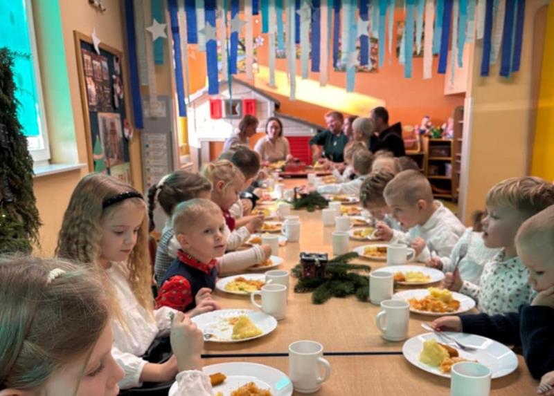 19 grudnia 2025 roku w naszym przedszkolu odbyła się wyjątkowa Wigilia- pełna radości, ciepła i świątecznej atmosfery. Dzieci z ogromnym zaangażowaniem uczestniczyły w przygotowaniach, wspólnie śpiewały kolędy, składały sobie życzenia i dzieliły się opłatkiem. Nie zabrakło uroczystego poczęstunku oraz rozmów o świątecznych tradycjach.