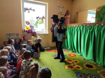 Dnia 23 maja nasze przedszkole odwiedził teatr objazdowy z barwnym i pełnym humoru przedstawieniem pt. "Kłamstwa Kozy". Spektakl ukazywał, że kłamstwo ma krótkie nogi, a w życiu nie należy oszukiwać i żerować na cudzej dobroci.