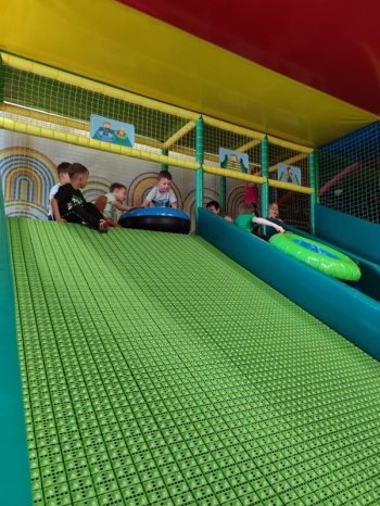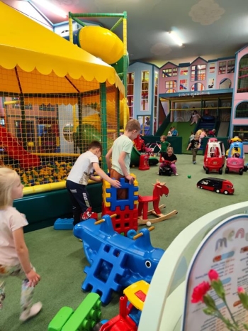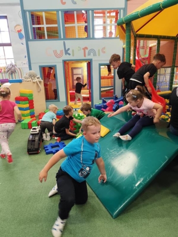 Dzieci z entuzjazmem korzystały z dostępnych atrakcji, angażując się w aktywności fizyczne i twórcze zabawy. Czas spędzony w sali zabaw minął bardzo szybko, a uśmiechy na twarzach dzieci były najlepszym dowodem na to, jak bardzo podobała im się ta przygoda. Zadowolone, choć nieco zmęczone dzieci wróciły do przedszkola pełne nowych doświadczeń i wspomnień. Już teraz nie możemy doczekać się kolejnej wycieczki!