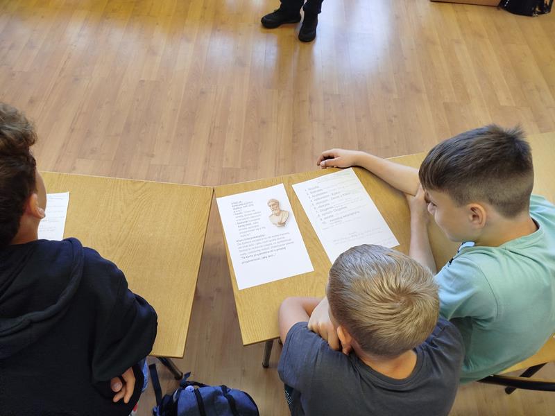 15 września 2025 r. na lekcji języka polskiego w klasie V, VII i VIII odbył się wykład z elementami warsztatów, przeprowadzony przez Pana Magistra Damiana Nowaka z Uniwersytetu im. Jana Długosza w Częstochowie. Na początku prowadzący przybliżył uczniom nurty filozofii starożytnej, które na różne sposoby podejmują temat szczęścia i sensu życia. W drugiej części wykładu prowadzący przeszedł do rozważań nad współczesnym rozumieniem szczęścia. Następnie uczestnicy wykonali krótkie ćwiczenia praktyczne: wystąpienia przed grupą, w których należało zaprezentować własne rozumienie szczęścia, wykorzystując poznane wcześniej zasady.